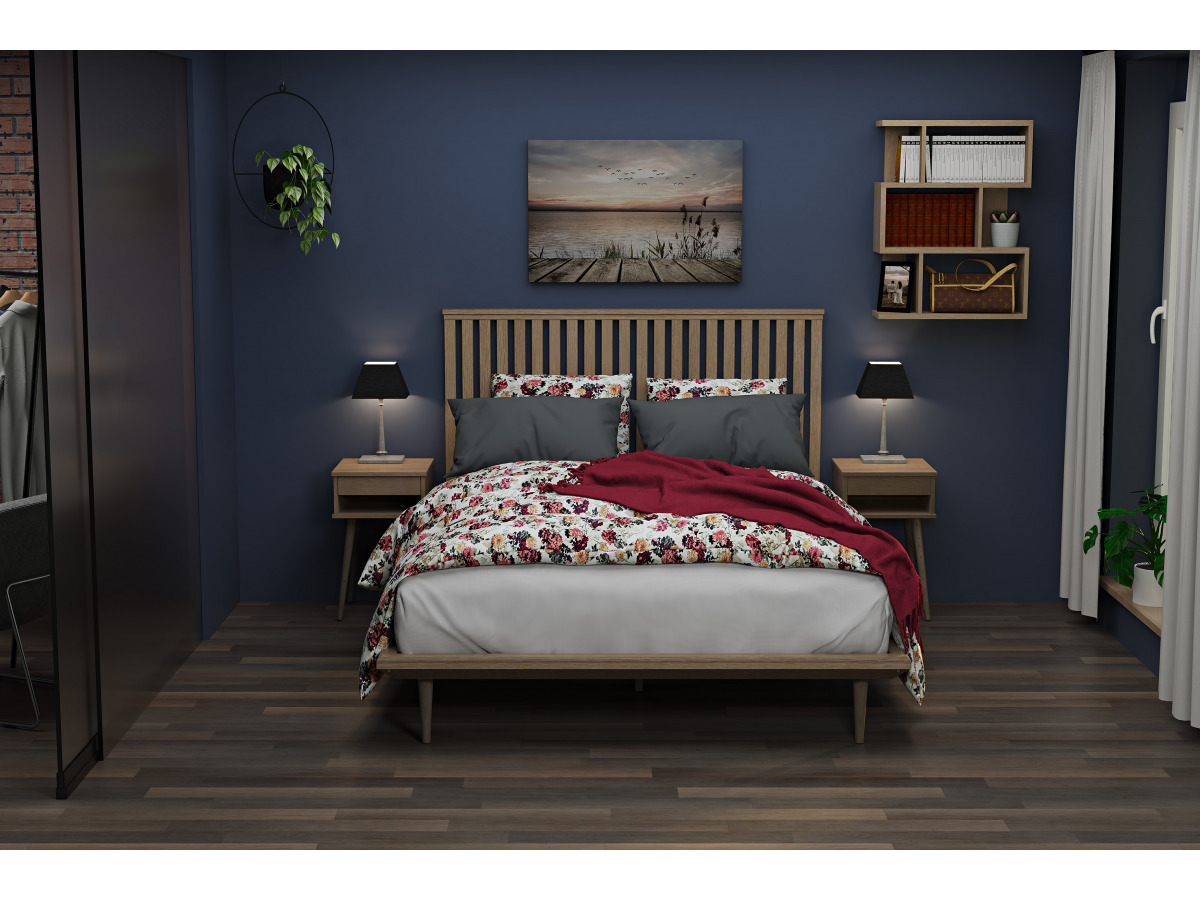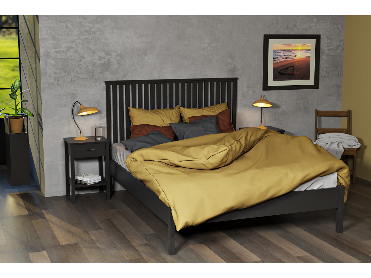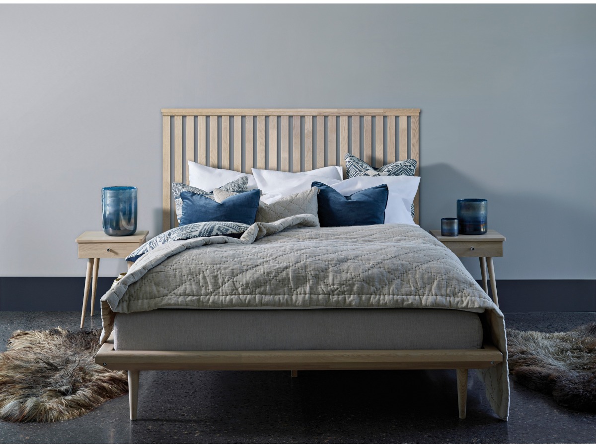 LANGFOSS spilegavl står på gulvet inntill vegg og kan benyttes som hodegavl sammen med ramme- og kontinenalmadrasser.
