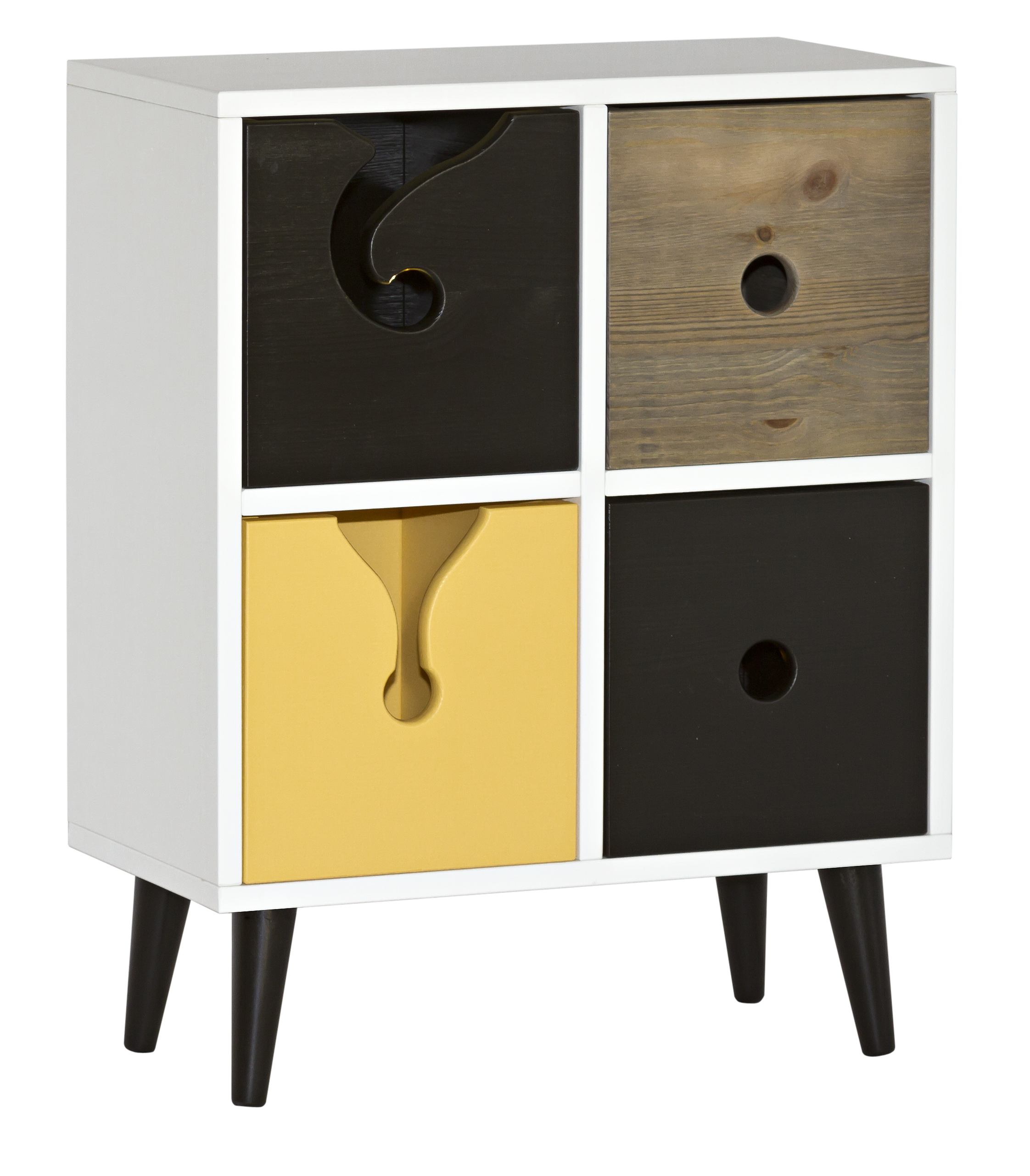 Serien består av flere typer skap, med skuffer i forskjellig design. Utfresingene fungerer som håndtak og en plass hvor tråden kan komme ut når du strikker.
