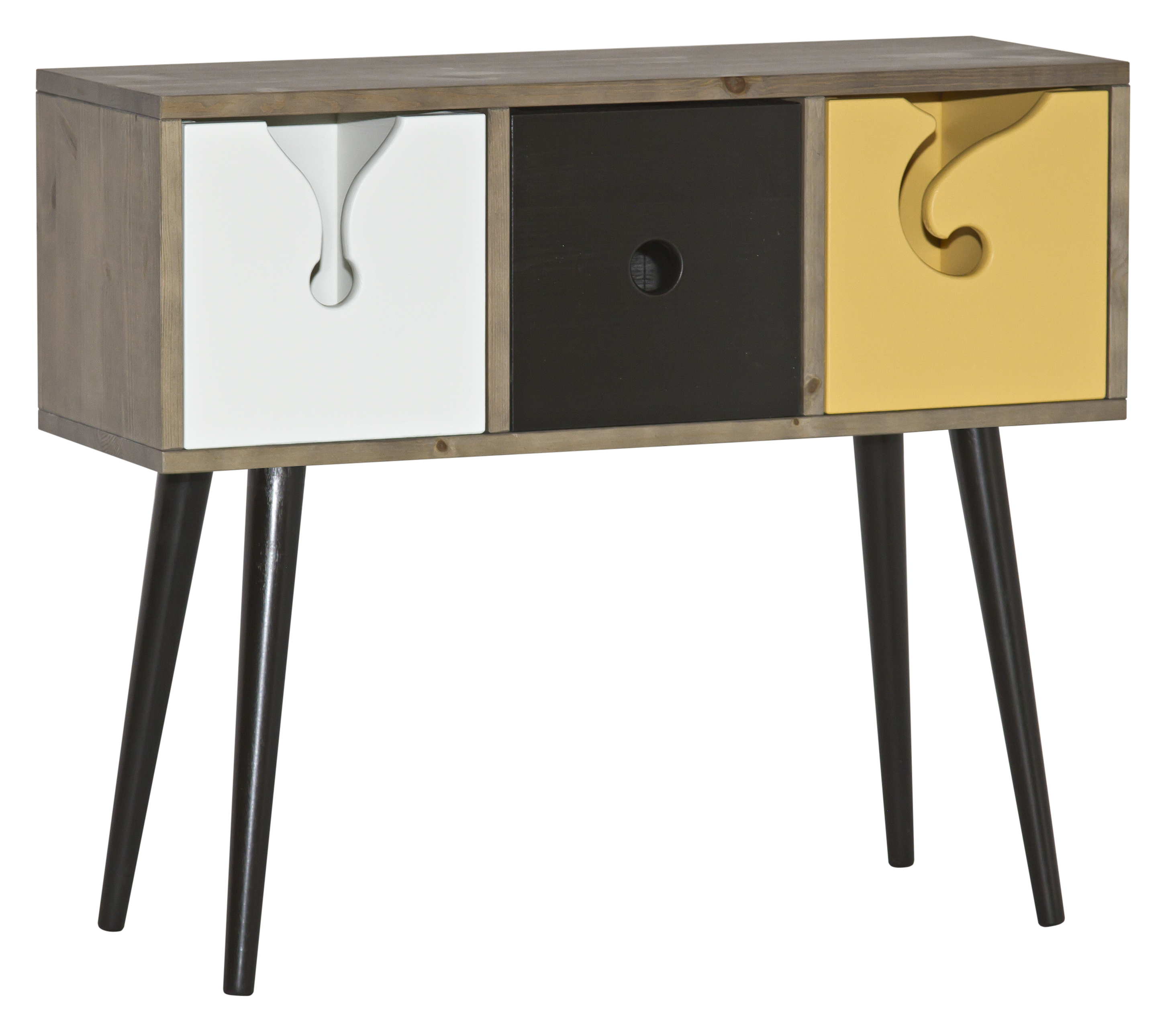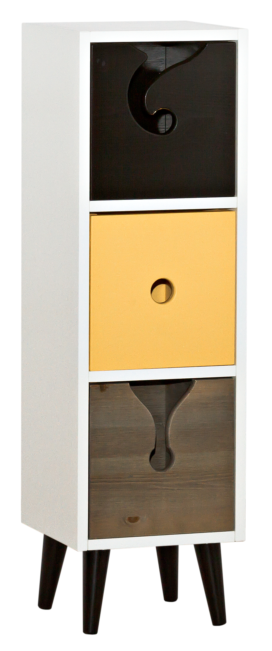 Her vist i farge Bomull, med 1 skuffe Snurr i farge Svart, 1 skuffe Knute i farge Solrenning og 1 skuffe Maske i farge Grå Trønder.